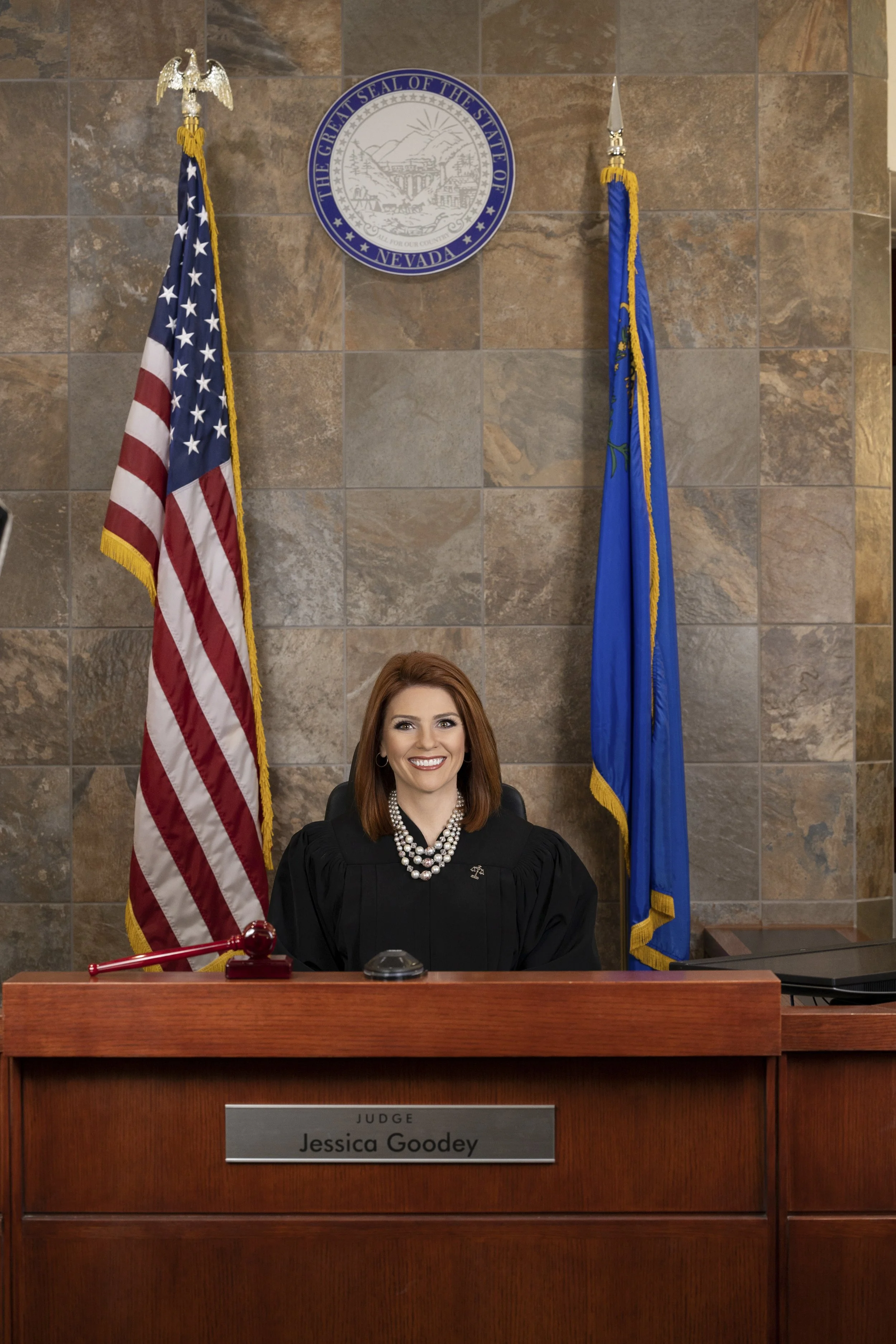 Judge Jessica Goodey was elected to the Las Vegas Justice Court in November of 2022 and took the bench in January 2023. Elected for a six-year term, she currently presides over a civil calendar. She also serves on the Executive Committee for the Las Vegas Justice Court, the Vice President of NJLJ, the statewide limited jurisdiction judge organization, and Secretary of the AJA, the international association of judges.